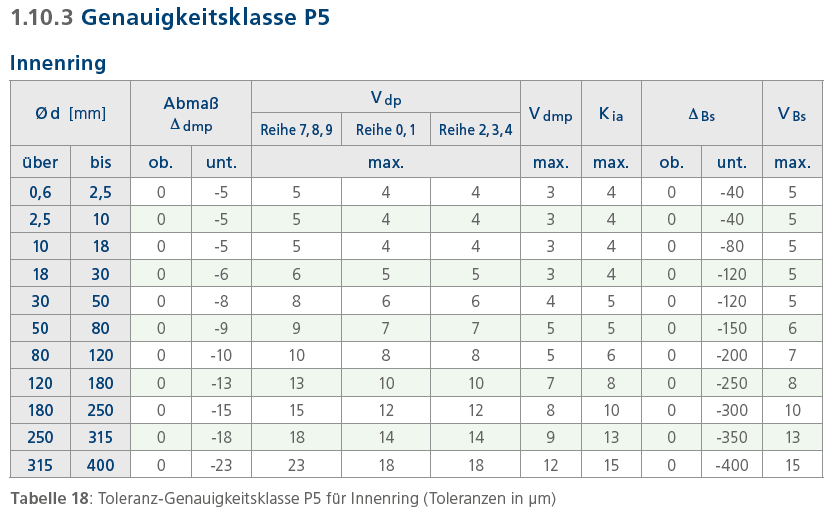 V dp Schwankung des Bohrungsdurchmessers in einer Radialebene