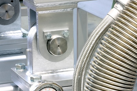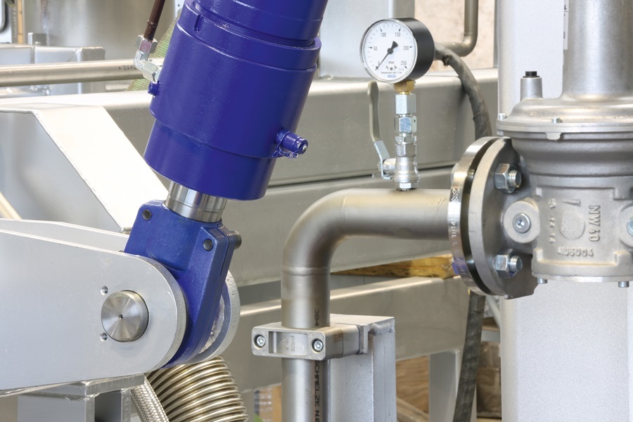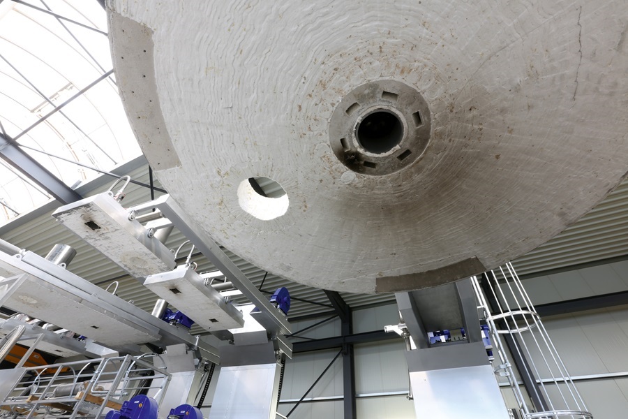 Die Bewegungen können also nur sauber ausgeführt werden, indem sowohl bei der Aufnahme für den Auslegerarm als auch an den Hydraulikzylindern sphärische Gelenkköpfe verwendet werden. Damit werden die Lager spannungsfrei und Axialkräfte verhindert. Die Trockenbrenner sind im Grunde vergleichbar mit den Brennern, die auch ein Privathaushalt in der eigenen Gas- oder Ölheizung hat, nur dass das in der hier beschriebenen Anlage alles deutlich größer dimensioniert ist, weil hier entsprechend natürlich eine größere Leistung gebraucht wird. Und genau dort fließt das besondere Know-how der Firma MEFKON darüber ein, wie so ein Brenner genau konstruiert sein muss, wie zum Beispiel Zusatzluft zum Trocknen eingeführt werden muss und wie man einen Hitzeschild möglichst so baut, dass dieser möglichst lange hält, damit die Konstruktion nicht bereits nach zwei bis drei Monaten auseinanderfällt.